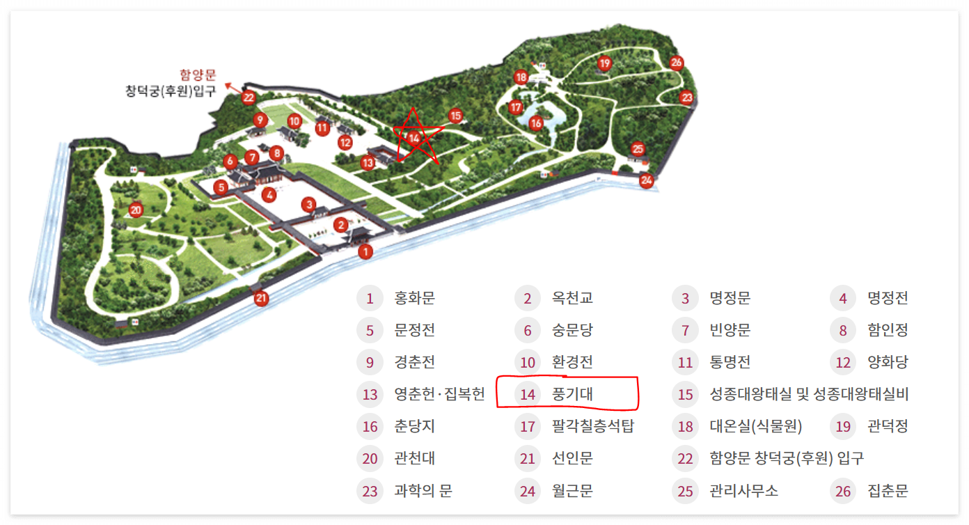 대형 보름달이 설치되는 창경궁 풍기대는 집복헌 뒤편 높은 언덕 위에 자리하고 있다.